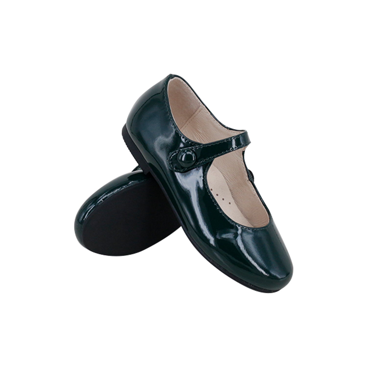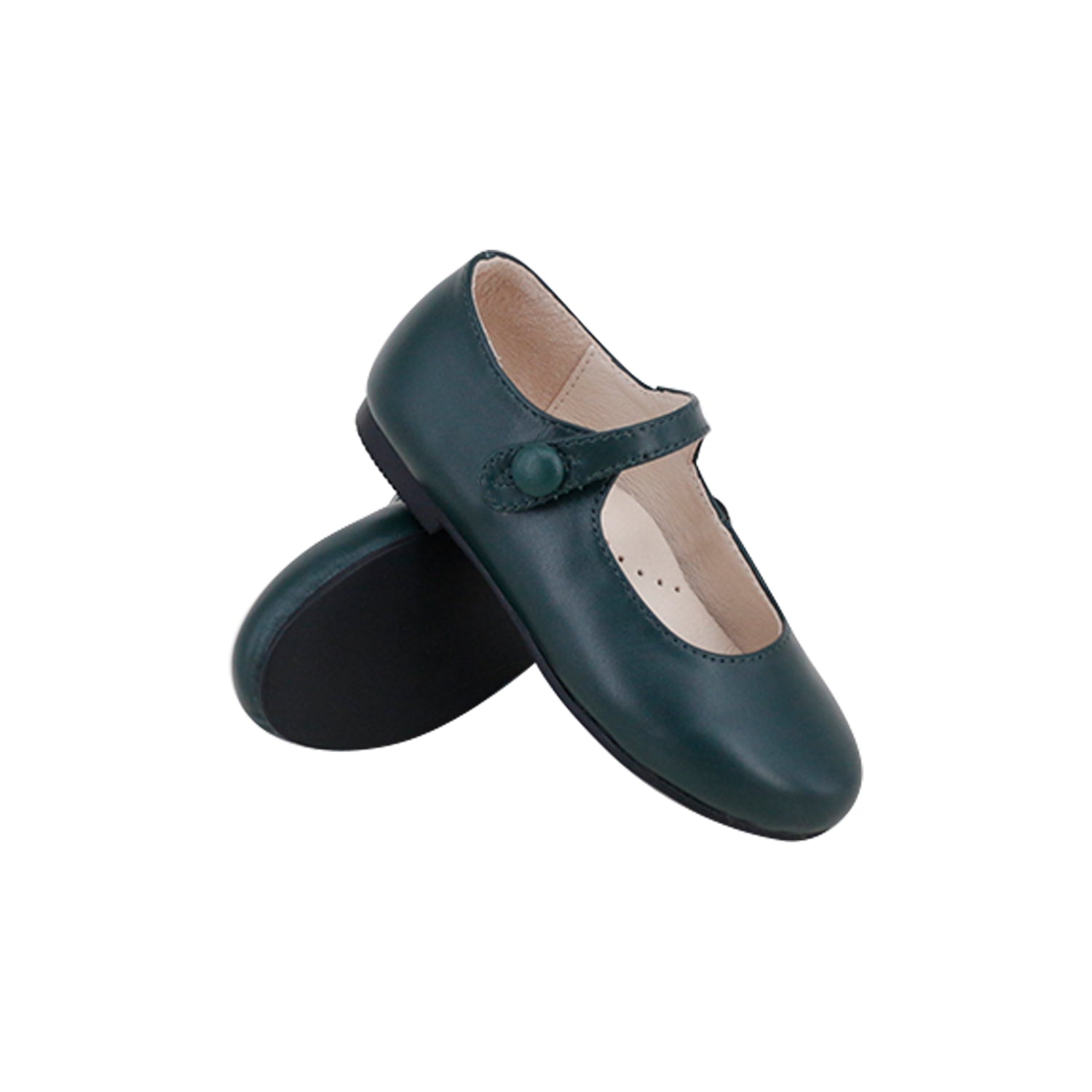 Expertly crafted from supple genuine leather, this classic Mary Jane features a sleek rubber sole and an adjustable Velcro strap for ease and comfort.